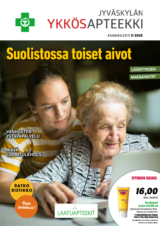 Voit lukea lehden selainversion klikkaamalla vasemmassa reunassa näkyvää lehden kuvaa tai hakea lehden apteekistamme.